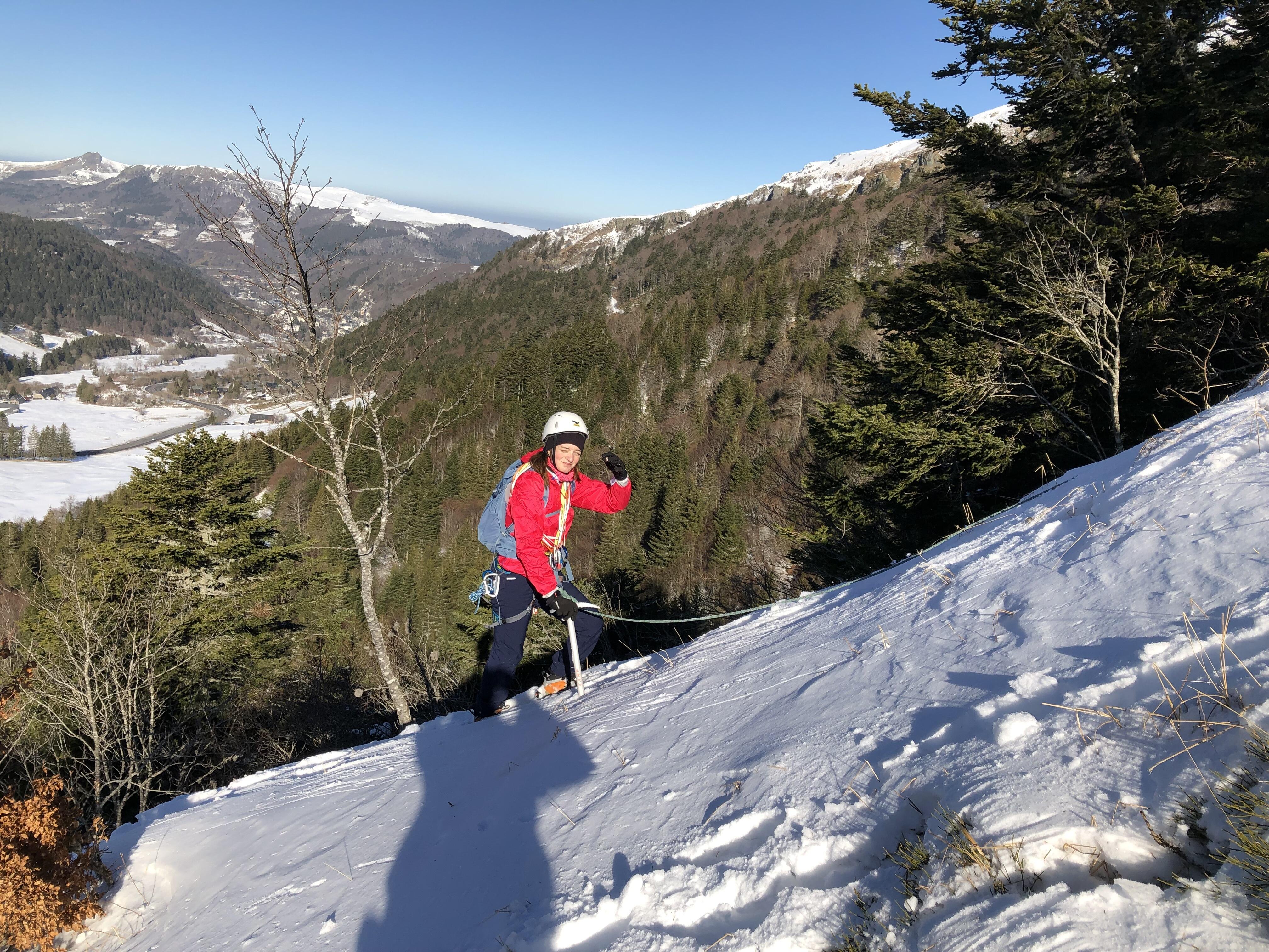 Montée au roc de Cuzeau atelier cramponnage en pente
